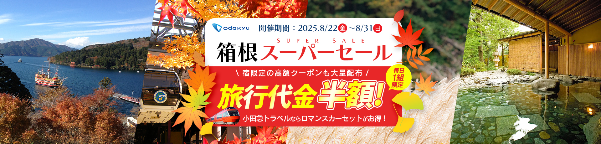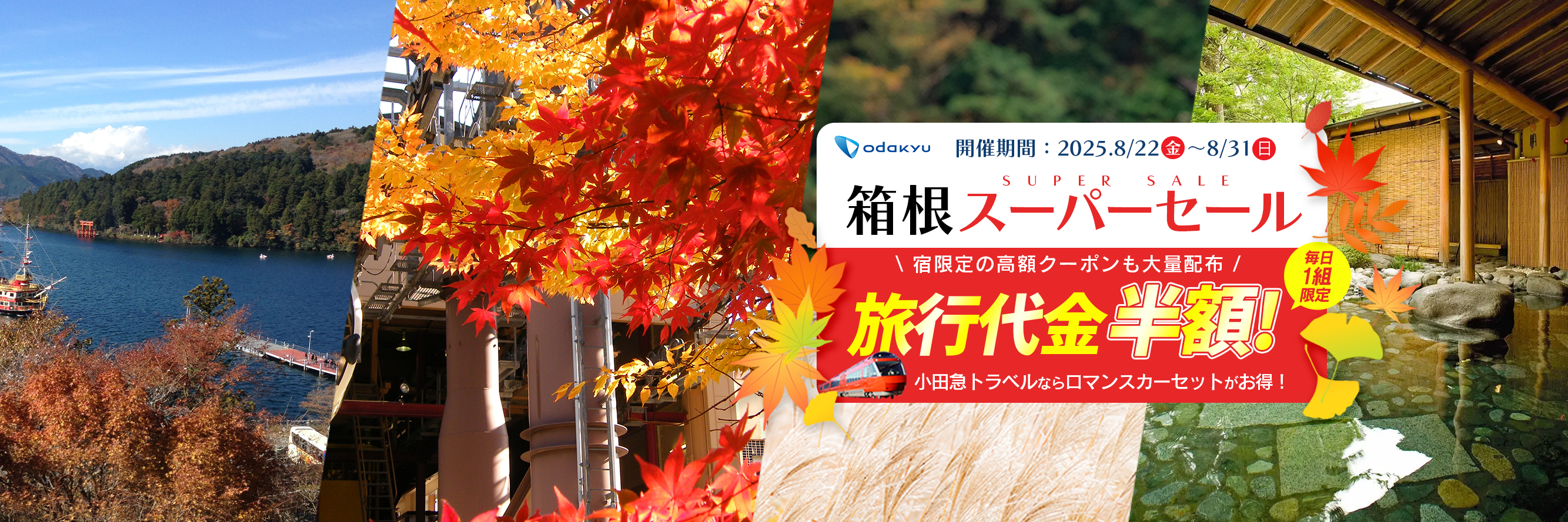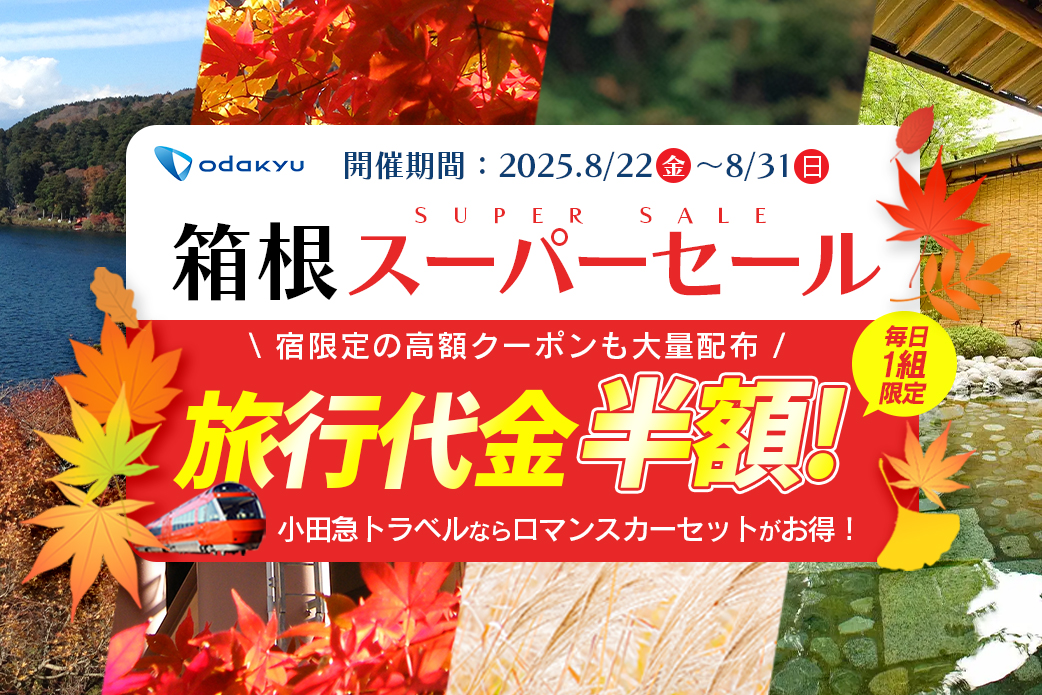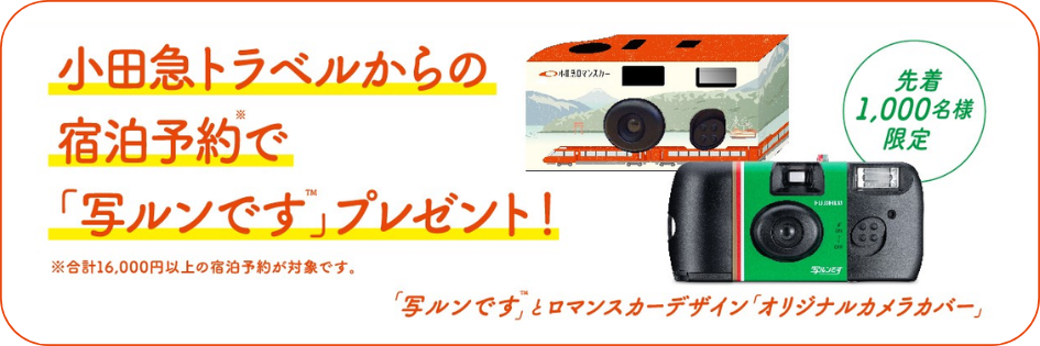 宿泊・セットプラン|2025.10.07【ロマンスカーで思い出、残ルンです キャンペーン開催】 ロマンスカーを含む旅行商品16,000円以上のご予約で、先着1,000名様に「写ルンです™」をプレゼント!10/14~3/31まで