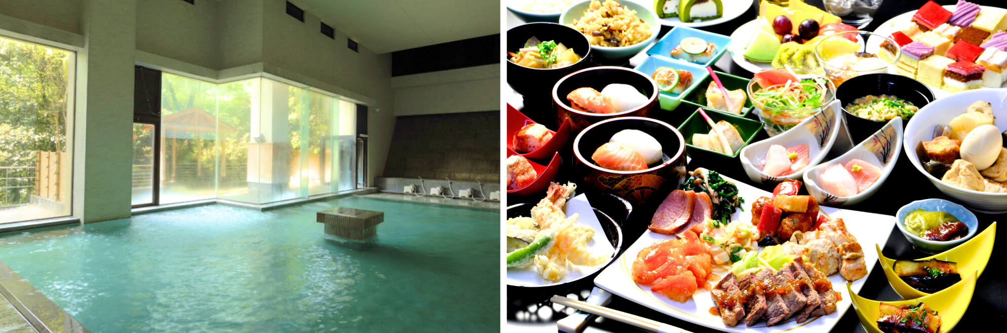 キッズルームやゲームコーナーのほか、赤ちゃん向けの無料貸出アイテムがとにかく豊富!おむつ用ゴミ箱や補助便座まで揃っており、売店にはおむつやベビーフードの販売も。バイキング形式の食事では、和洋中そろったメニューが並び、お子さまが喜ぶメニューも豊富に揃っています。