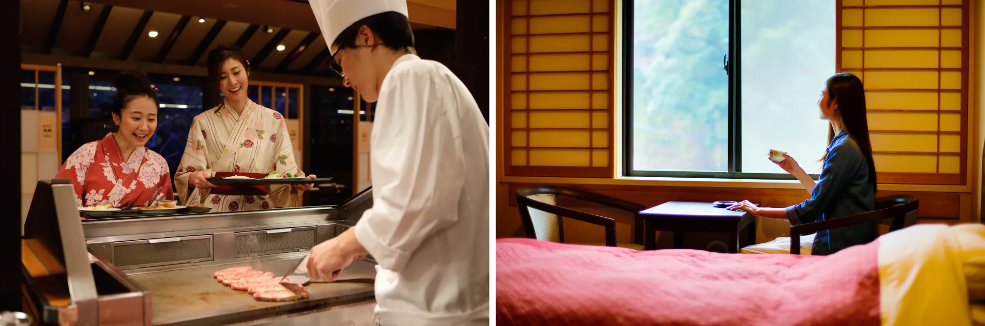 宿泊は中学生以上限定のため、館内は落ち着きと静けさに包まれています。大人だけのひとときを過ごせるので、ゆったりとした時間を大切にしたい女子旅やカップルにも最適です。