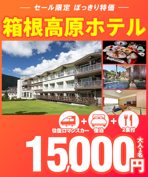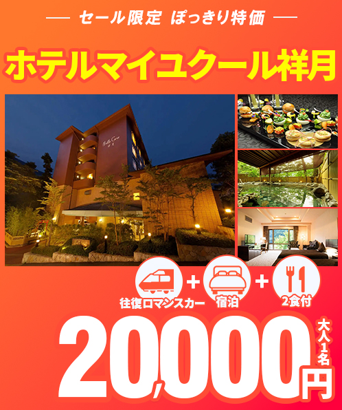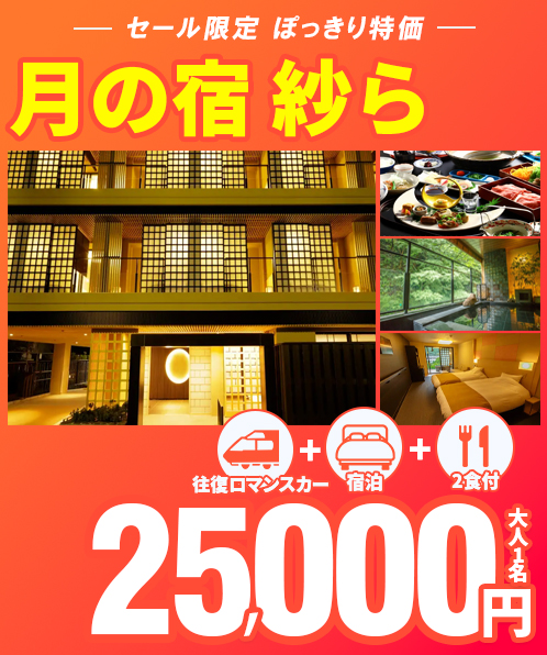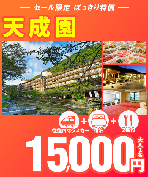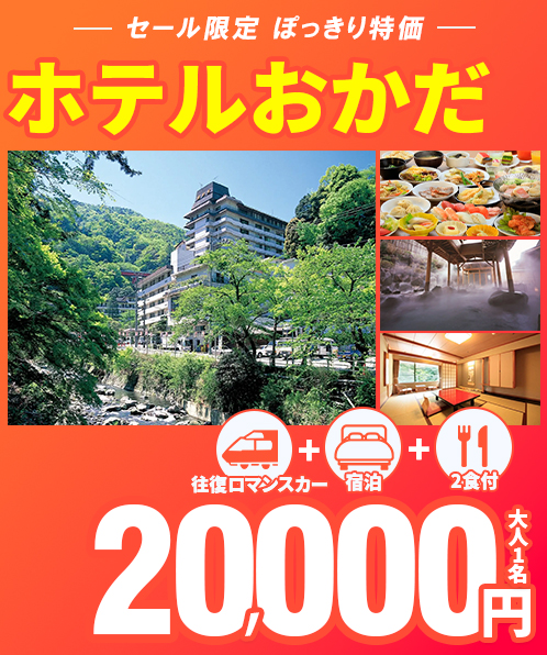 ❶セール限定で人気温泉旅館の1泊2食+往復ロマンスカー(特急券・乗車券)のぽっきり特価プラン発売!