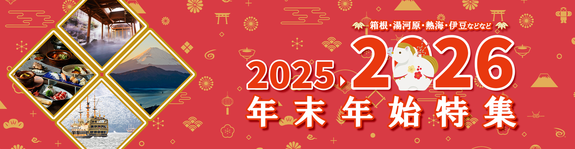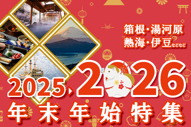 箱根をはじめ、湯河原、熱海、伊豆など、人気の温泉地を中心に、年末年始におすすめの宿泊プランを多数ご用意しました。初詣や温泉、美食、絶景…一年の締めくくりと新しい年の始まりを、特別な旅で迎えませんか?