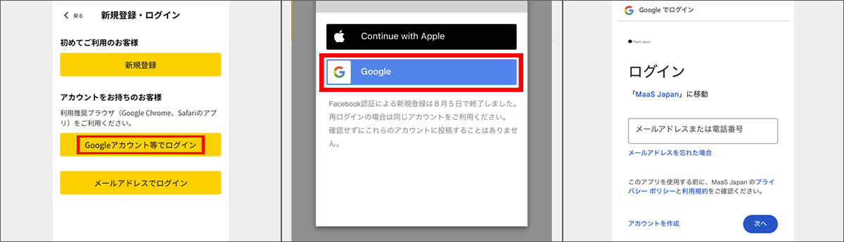 デジタルチケットのご利用方法 ‐ Googleアカウント等でログイン(旧SNSログイン)