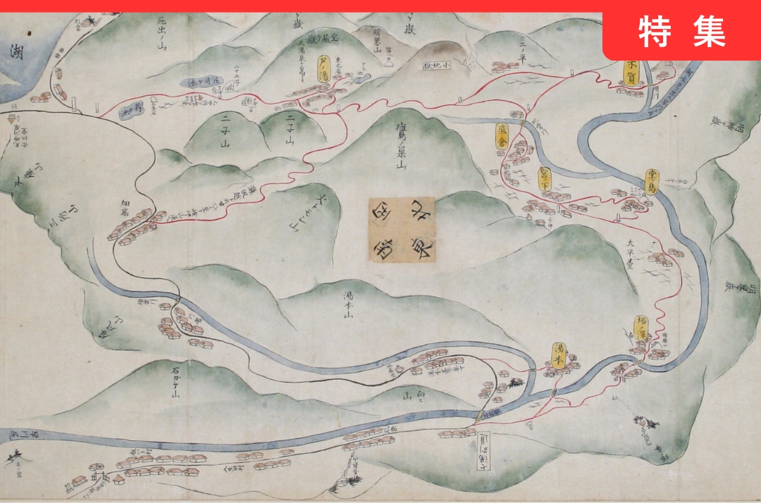 「温泉」に関する展示では「箱根七湯」から現代の「箱根十七湯」へと至る変遷を紹介。湯治場として親しまれていた箱根が、次第に温泉観光地へと発展していく背景を解説しています。
