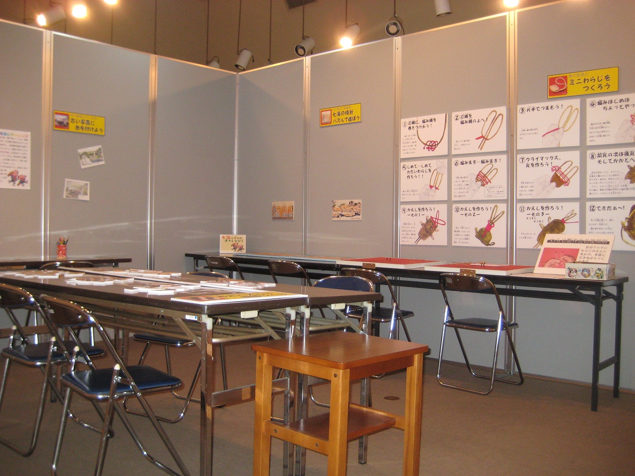 かつて、わらじは旅人の足元を守る必需品でした。原寸大を作るのは大変ですが、ミニサイズであれば約30分で完成します。紙ひもで約5cmのミニわらじを作る体験コーナーは、お子さまから大人まで、ついつい夢中になってしまう手作り体験のひとつです。
