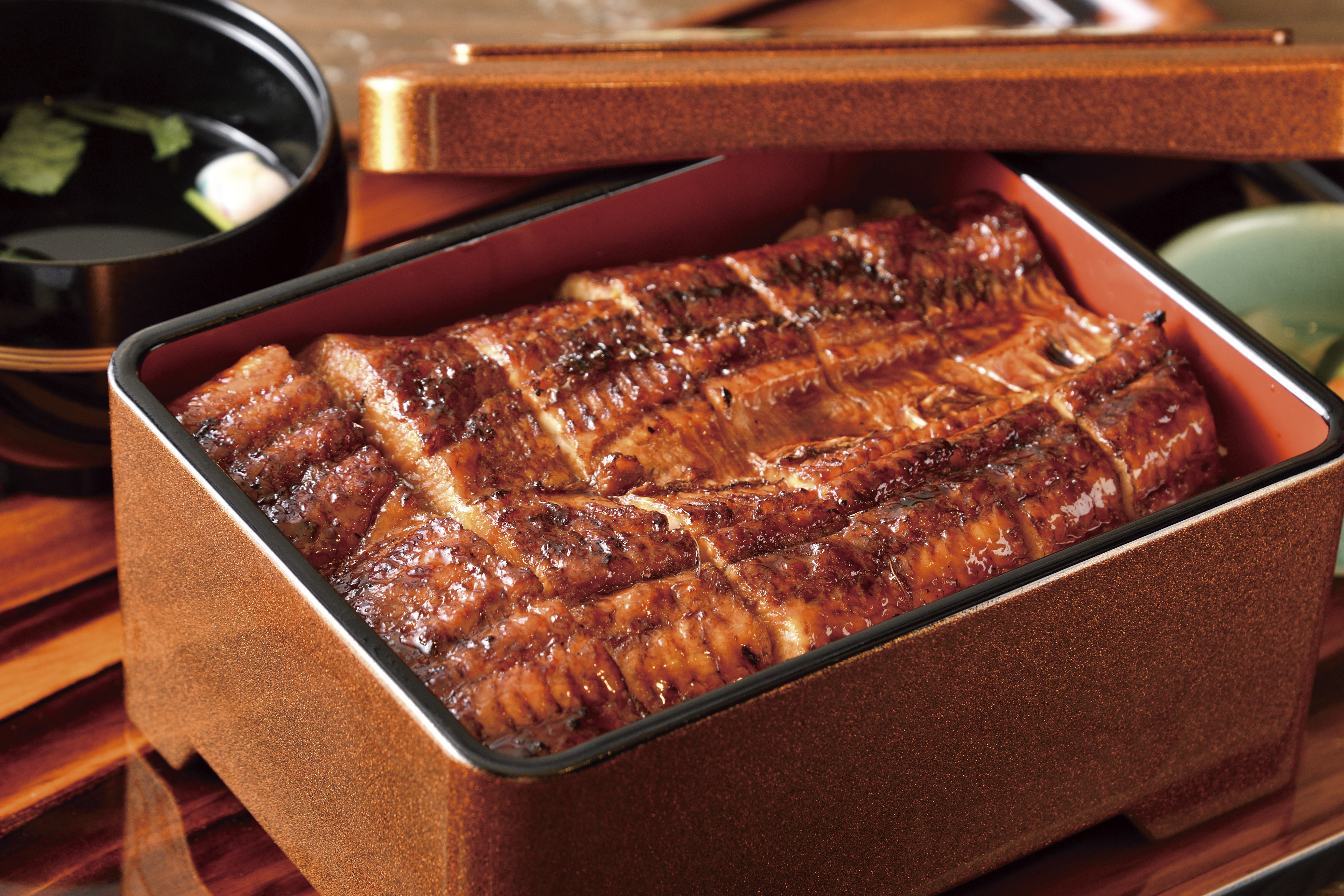 看板メニューのうな重は厳選した国産うなぎをふっくらと蒸し上げ、香ばしい秘伝のタレで仕上げた逸品。かながわブランド「足柄牛」を使った「すき焼き重」も見逃せません。箱根やっこや地酒など、箱根・小田原の食材を活かしたサイドメニューも揃います。
