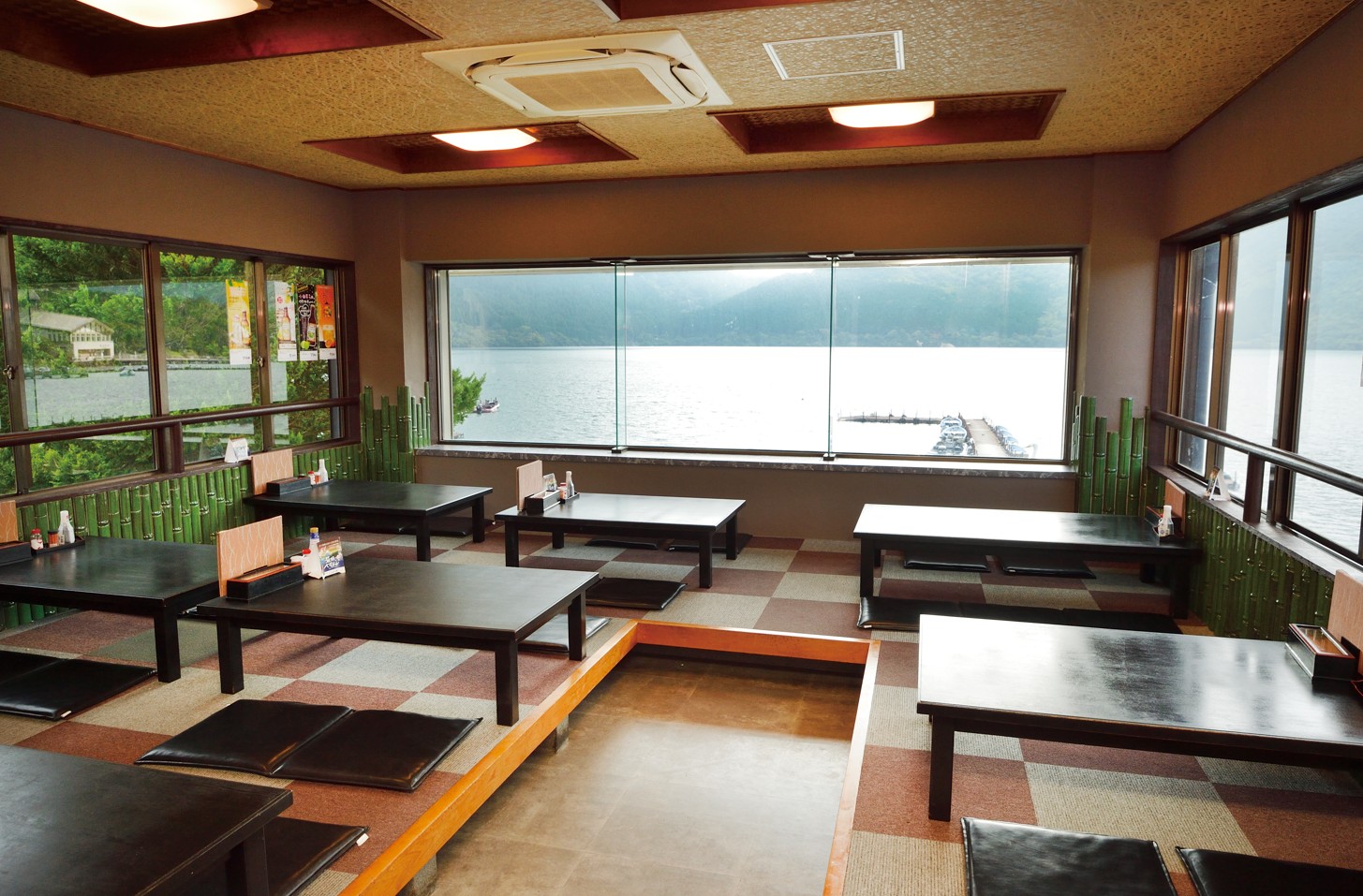 芦ノ湖に面したロケーションで、天気のよい日は窓から湖と山並みを眺めながら料理を楽しむことができます。営業は魚がなくなり次第終了となるため、事前に予約しておくと安心です。