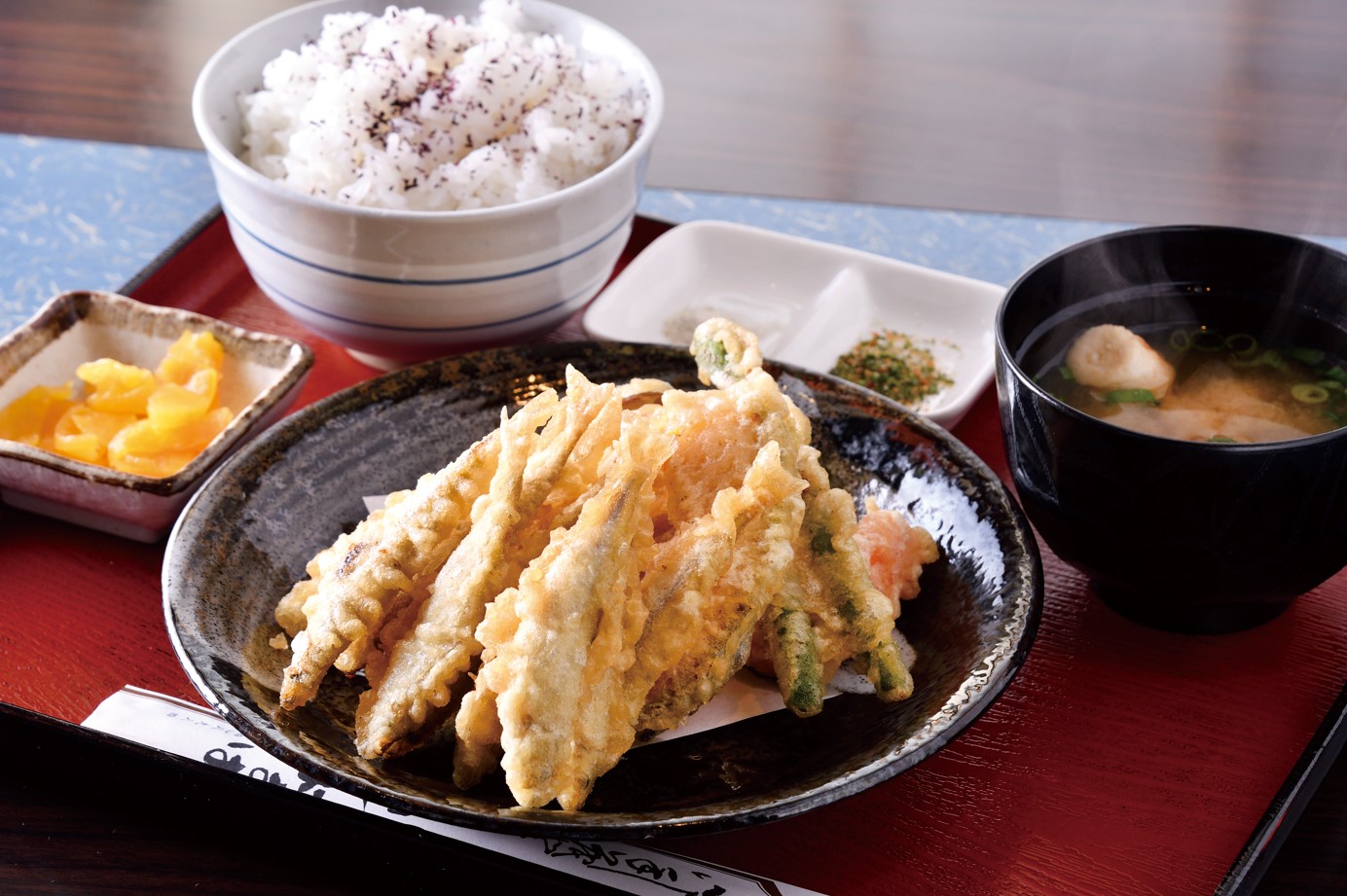 名物は「わかさぎ御膳」や数量限定の「わかさぎランチ」。サクサクの衣をまとった天ぷらや、香ばしく揚がったフライなど、シンプルな調理法で素材の旨みが引き立ちます。ヒメマスやニジマスなど、芦ノ湖の他の湖水魚料理も堪能できます。