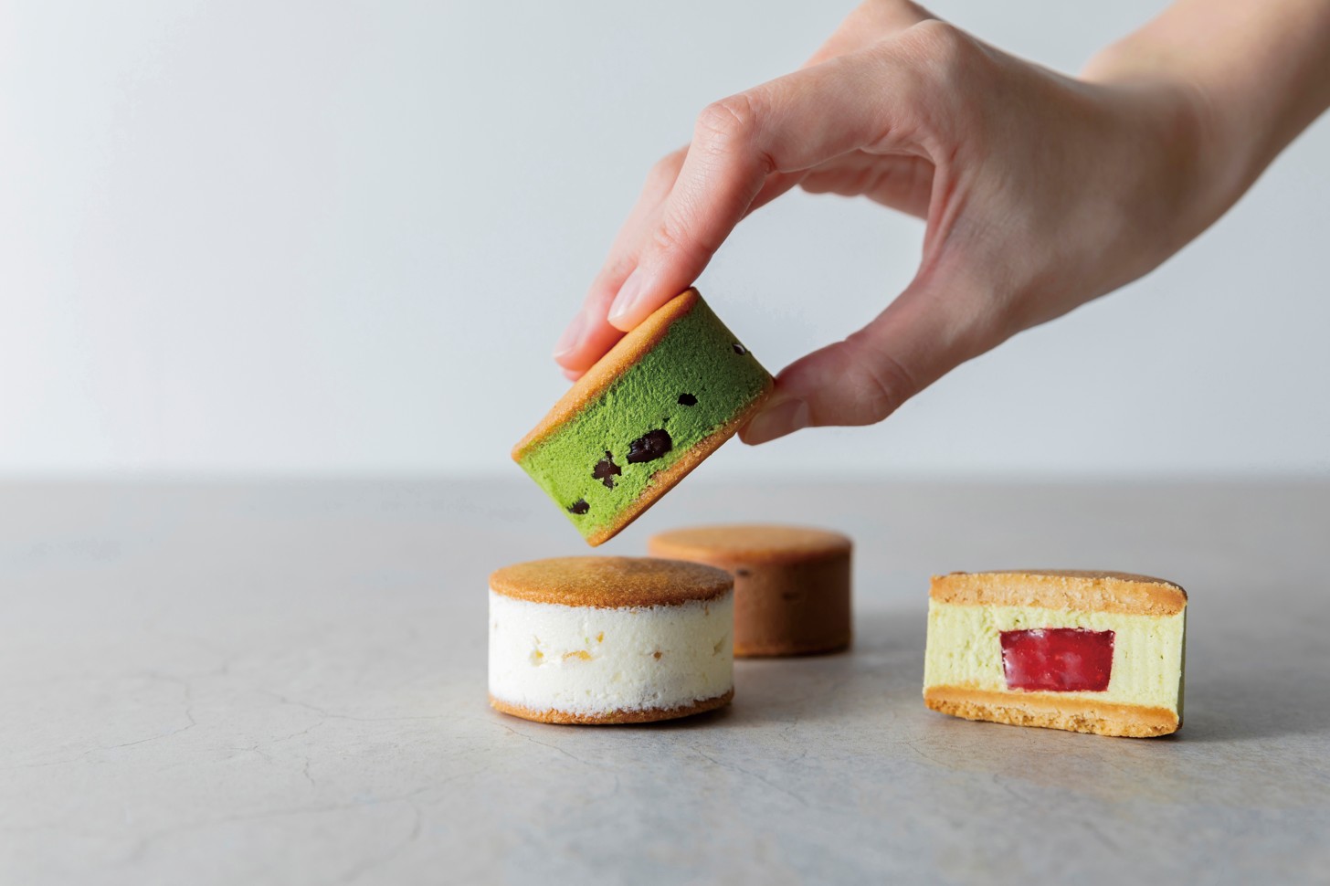 定番のプレーンは、小田原産レモンの果汁とピールを隠し味に、さっぱりとした甘さとクッキーのほどよい塩味が特徴です。「ダブルチョコレート」や「ピスタチオ&ベリー」など、濃厚な味わいのフレーバーも評判を呼んでいます。バターをたっぷり使ったクッキーと軽やかなバタークリームの組み合わせは、つい「もう一つ」と手が伸びる味わいです。